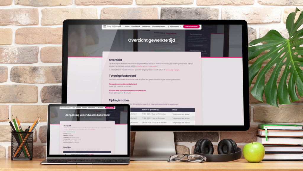 Wanneer wij tijd registreren voor een serviceverzoek of uitgevoerde werkzaamheden, wordt deze tijd niet alleen zorgvuldig vastgelegd, maar ook zichtbaar gemaakt in uw account. Daarnaast ontvangt u, indien gewenst, een e-mail zodra gewerkte tijd is gecontroleerd en verwerkt voor facturatie.